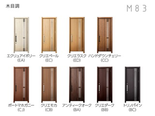 - アンティークオーク(BA)エクリュアイボリー(EA)クリエダーク(BB)クリエペール(EC)クリエモカ(CB)クリエラスク(ED)トリノパイン(BC)ハンドダウンチェリー(CC)ポートマホガニー(CJ)